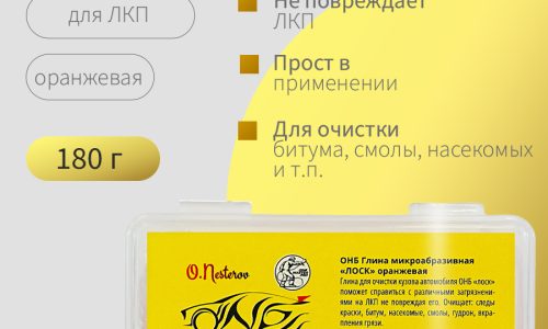 ОНБ Глина микроабразивная «ЛОСК» оранжевая – это профессиональное решение для глубокой очистки и подготовки поверхности кузова автомобиля. С её помощью вы сможете легко удалить даже самые стойкие загрязнения, такие как битумные пятна, следы гудрона, тополиный пух, остатки насекомых, птичий помёт и другие мелкие вкрапления. Глина идеально подходит для использования перед полировкой, обеспечивая идеально чистую поверхность … Читать далее ОНБ Глина микроабразивная «ЛОСК» оранжевая