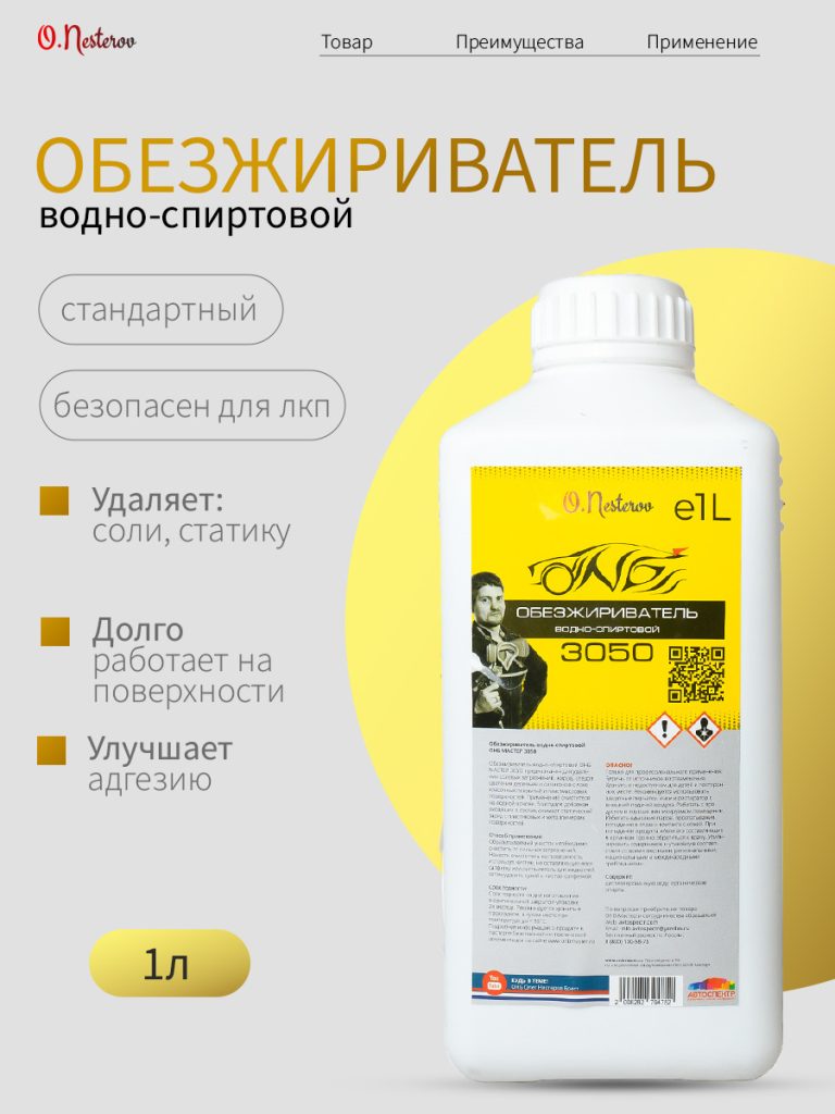 Используя обезжириватель 3050 Вы гарантируете себе качественный конечный результат. Не применяйте материал внутрь, это опасно для жизни.