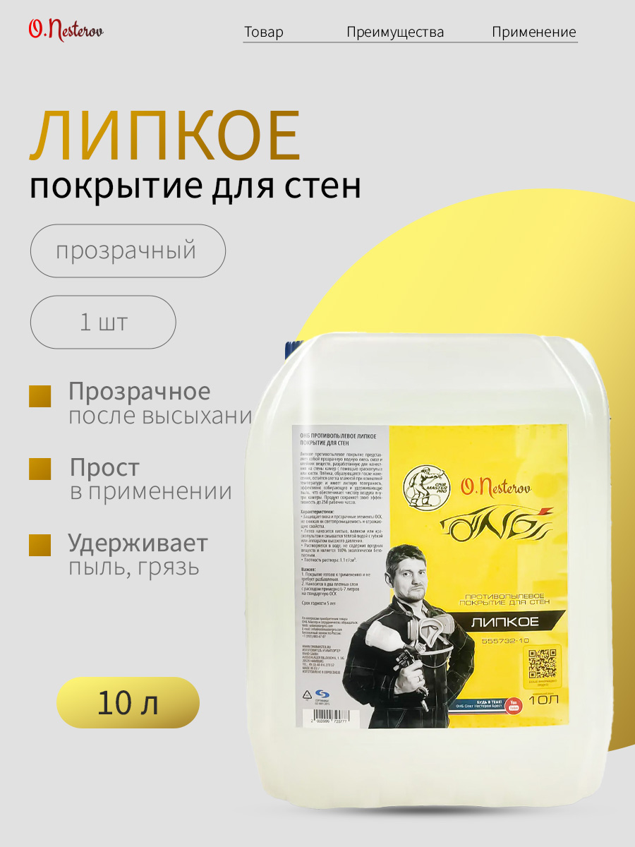 Липкое противопылевое покрытие представляет собой прозрачную водную смесь смол и клейких веществ, разработанную для нанесения на стены камер с помощью краскопульта или кисти. Плёнка, образующаяся после нанесения, остаётся слегка влажной при комнатной температуре и имеет липкую поверхность, эффективно собирающую и удерживающую пыль, что обеспечивает чистоту воздуха внутри камеры. Продукт сохраняет свою эффективность до 250 рабочих часов.